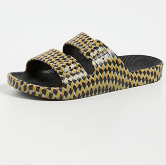 I live in comfort, that is the way I prefer. Sneakers and slides are my GO TO. I've always loved Freedom Moses slides compared to Birkenstock or any other brand. This year I switched out my black ones to a fun pattern to add some character. They are so comfortable!